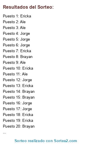 Lista de participantes: Ericka, Ale, Jorge, Brayan, Ericka, Ale, Jorge, Brayan, Ericka, Ale, Jorge, Brayan, Ericka, Ale, Jorge, Brayan, Ericka, Ale, Jorge, Brayan, Ericka, Ale, Jorge, Brayan.