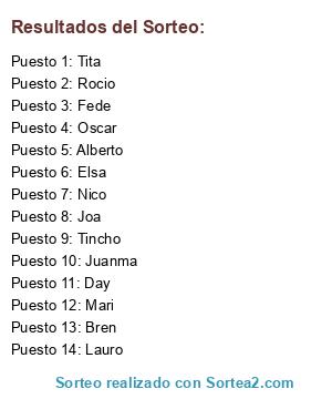 Lista de participantes: Elsa, Oscar, Joa, Tincho, Fede, Rocio, Mari, Lauro, Nico, Bren.