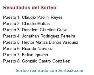 Lista de participantes: Gonzalo Castro González, Claudio Paolini Reyes, Claudio Matías, Ricardo Narvaez, Jonathan Rodríguez Ferreira, Felipe Ignacio, Donelem Clikeiton Crew, Hector Matias Llanos Vasquez.
