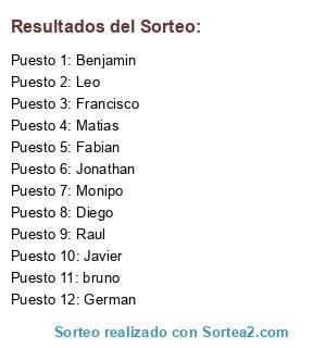 Lista de participantes: Francisco, Jonathan, Matias, Javier, Monipo, Benjamin, Leo, German, Raul, Diego, bruno, Fabian.