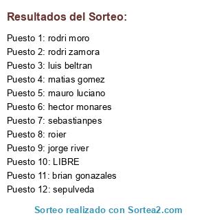 Lista de participantes: sebastianpes, roier, sepulveda, matias gomez, hector monares, brian gonazales, rodri zamora, rodri moro, mauro luciano, jorge river, luis beltran, LIBRE.
