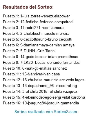Lista de participantes: chile, colombia, paraguay, peru-, uruguay, venezuela, mexico-, usa-, chile2, colombia2, paraguay2, peru-2, uruguay2, venezuela2, mexico-2, usa-2.