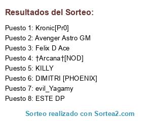 Lista de participantes: Avenger Astro GM, Felix D Ace, KILLY, Kronic[Pr0], †Arcana†[NOD], ESTE DP, evil_Yagamy, DIMITRI [PHOENIX].