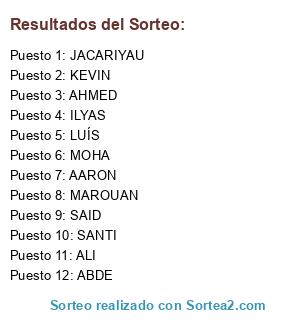 Lista de participantes: JACARIYAU, SAID, MAROUAN, AARON, LUÍS, MOHA, AHMED, ALI, ABDE, KEVIN, SANTI, ILYAS.