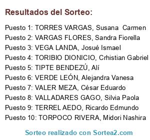 Lista de participantes: TERREL AEDO, Ricardo Edmundo, TIPTE BENDEZÚ, Alí, TORIBIO DIONICIO, Crhistian Gabriel, TORPOCO RIVERA, Midori Nashira, TORRES VARGAS, Susana Carmen, VALER MEZA, César Eduardo, VALLADARES GAGO, Silvia Paola, VARGAS FLORES, Sandra Fiorella, VEGA LANDA, Josué Ismael, VERDE LEÓN, Alejandra Vanesa.