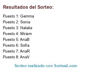 Lista de participantes: AnaR, Miriam, Natalia, AnaB, AnaV, Gemma, Sofía, Sonia.