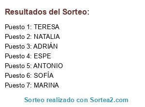 Resultados del sorteo: