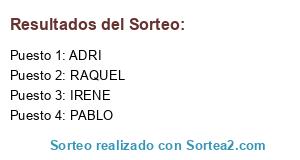 Lista de participantes: ADRI, RAQUEL, IRENE, PABLO.