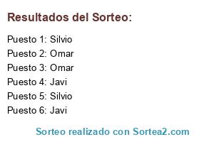 Lista de participantes: Javi, Omar, Silvio, Javi, Omar, Silvio.