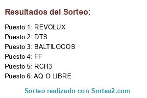 Lista de participantes: RCH3, DTS, AQ O LIBRE, FF, BALTILOCOS, REVOLUX.
