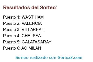 Lista de participantes: REAL SOCIEDAD, AC MILAN, JUVENTUS, CSKA MOSCU, VALENCIA, WAST HAM, CHELSEA, GALATASARAY, PORTO, VILLAREAL.