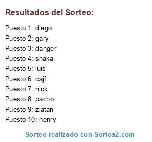 Lista de participantes: gary, danger, nick, henry, pacho, diego, cajf, shaka, zlatan, luis.