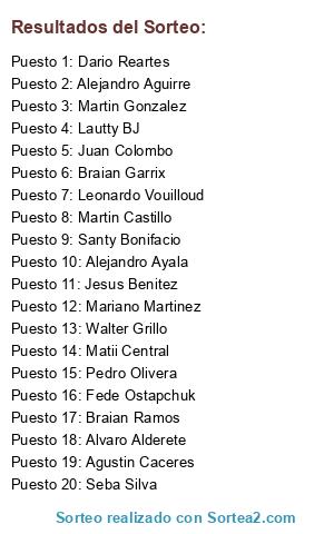 Resultados del sorteo: