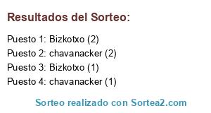 Lista de participantes: Bizkotxo (1), Bizkotxo (2), chavanacker (1), chavanacker (2).