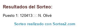 Lista de participantes: 120473 C. Olano, 120472 J. van der Meij, 120471 c. ferrandiz, 120470 s. bardoulat, 120469 J. GASOL MAGRIÑÁ, 120468 A. Sanz Gandul, 120467 A. Sanz Gandul, 120466 A. del Rio Moreno, 120465 J. Maroto, 120464 J. VELA SOTO, 120463 J. Maroto, 120462 M. Brito, 120458 L. Cruz, 120456 M. Dulanto Vargas, 120455 M. MIRON BEJAR, 120454 R. Cascales Monge, 120452 R. Campos, 120451 J. VIC CANO, 120450 C. Repa, 120449 j. martinez, 120448 J. Barcenilla, 120446 Y. Perdomo Cisneros, 120445 E. Hernandez, 120444 M. UBEDA GARCIA, 120443 E. RODRIGUEZ FRIAS, 120440 F. Del pino, 120439 C. CORCOLES, 120438 e. ugarte, 120437 I. Diaz Chulia, 120431 s. campos fernandez, 120427 M. Etxaniz, 120423 S. MARISTANY GUERIN, 120422 J. Gómez Montes, 120421 A. A, 120420 M. Ogluzdina, 120419 T. Edwards Jimena, 120418 C. Ruiz, 120417 t. bermejo, 120416 R. DIAZ FONDON, 120414 J. CANOVACA MUÑOZ, 120413 N. Olivé, 120412 M. GOMEZ, 120411 R. D'Alessandro Luchetti, 120410 J. VELA SOTO, 120409 T. Negreira Navarro Barbosa, 120407 M. EGIGUREN MAGUREGI, 120406 T. Torres, 120404 E. FILGUEIRA, 120402 m. pollara, 120401 J. FONTAN IBAÑEZ.