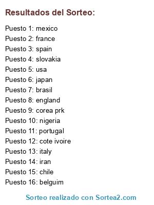 Resultados del sorteo: