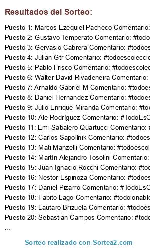 - Ganador: Marcos Ezequiel Pacheco Comentario: #todoescoleccionable