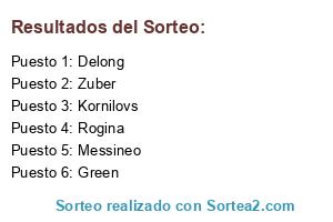 Lista de participantes: Delong , Dewald , Green , Kornilovs , Lucero A. , Messineo , Zuber , Rogina.
