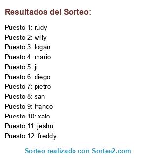 Lista de participantes: mario, diego, san, xalo, pietro, rudy, jeshu, franco, jr, freddy, logan, willy.