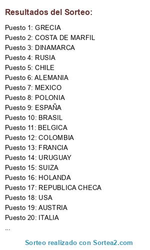 Resultados del sorteo: