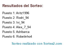 Lista de participantes: Alex_7_94, Aritz1996, Adribarca, Ivi_94, Robetinho4, Rodri_94.
