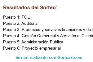 Resultados del sorteo:
