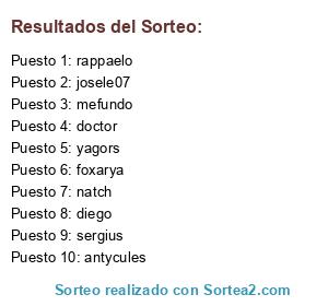 Lista de participantes: antycules, doctor, mefundo, sergius, josele07, natch, rappaelo, diego, yagors, foxarya.