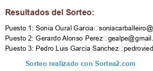 - Puesto 1: Sonia Oural Garcia soniacarballeiro@gmail.com