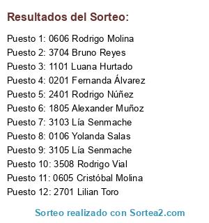 Resultados del sorteo: