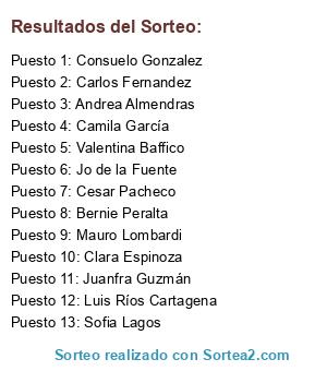 Resultados del sorteo:
