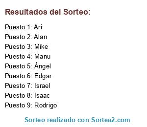 Lista de participantes: Eduardo, Iván R., Daniel, Alexis, Ángel, Gabriel, Manu, Alan, Isaac, Fernando, Israel, Rodrigo, Ari, Mike, Edgar.
