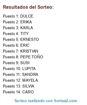 Resultados del sorteo:
