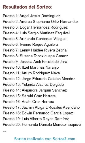 Lista de participantes: Sorteo realizado sobre un fichero que contiene 31 participantes.