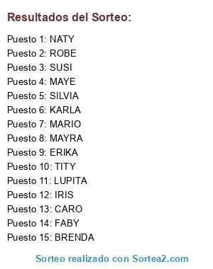 Lista de participantes: TITY, ROBE, IRIS, FABY, CARO, SUSI, MAYRA, SILVIA, ERIKA, NATY, MAYE, KARLA, LUPITA, BRENDA, MARIO.
