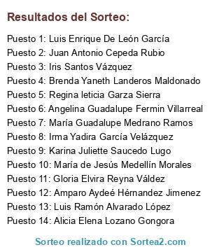 Lista de participantes: Iris Santos Vázquez , Amparo Aydeé Hérnandez Jimenez , Gloria Elvira Reyna Váldez , Irma Yadira García Velázquez , Luis Enrique De León García , Luis Ramón Alvarado López , Alicia Elena Lozano Gongora , Angelina Guadalupe Fermin Villarreal , Brenda Yaneth Landeros Maldonado , Juan Antonio Cepeda Rubio , Karina Juliette Saucedo Lugo , Regina leticia Garza Sierra , María de Jesús Medellín Morales , María Guadalupe Medrano Ramos.