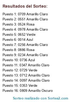Resultados del sorteo: