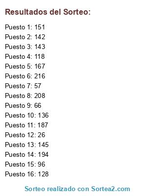 Resultados del sorteo: