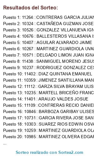 - Puesto 37: 11323 GARCIA RODRIGUEZ KEVIN ALEXIS