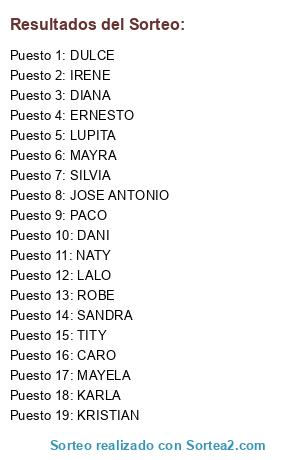 Resultados del sorteo: