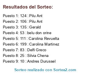 Lista de participantes: 1 Gaby chena, 2 paka, 3 Ale Chena, 4 Alicia B, 5 Gaby basilio, 6 Santi durussel, 7 Silvia Chena, 8 Santi durussel, 9 Emi Durussel, 10 Andres Durussel, 11 Maria Claudia Raimondi, 12 Ale Chena, 13 viví brunet, 14 Pepe Chena, 15 vicky musto, 16 Pilu Ant, 17 Panchito Bugna, 18 Maria Claudia Raimondi, 19 Romina, 20 Virra, 21 Dominga Landra, 22 paka, 23 Katy mt, 24 Emi Durussel, 25 Silvia Chena, 26 Analia Raviolo, 27 Aines, 28 mile Stoccafisso, 29 Nico Minotti, 30 Andres Durussel, 31 Katy mt, 32 Virra, 33 Gaby basilio, 34 Aines, 35 mile Stoccafisso, 36 Claudia, 37 Anabella trampo, 38 Pauli Durussel, 39 sol don orione, 40 Pepe chena, 42 Dominga Landra, 43 Pilu Ant, 44 vicky musto, 45 lucas elisseche, 47 Claudia, 48 Pauli durussel, 49 Raquel, 50 Gaby chena, 51 Titi, 52 Sofía, 53 belu don orine, 55 viví brunet, 56 Anabela, 57 Fabiana mama, 58 Mariel de blanco afs reco, 60 sini, 62 Luciano De grossi, 63 Nico Minotti, 64 Cami Pighin, 65 Marcelo, 66 Medu Zalazar, 68 Eugenia Raviolo, 69 Valentina Burkett, 72 Eugenia Raviolo, 73 Lucho De grossi, 75 Medu Zalazar, 76 Agu Davies, 77 Kitolini, 78 Jona berdasquera, 79 Alicia B, 80 Claudia, 82 Lari, 83 Delfi Greco, 84 Silvana Raviolo, 85 Lauta Puche, 86 Ema Roldan, 87 Sofía, 88 Carina Raviolo, 89 Agu Davies, 92 Nacho <3, 93 Lauta Puche, 94 Titi, 95 Kitolini, 96 Fabiana mama, 97 Silvana Raviolo, 99 Carina Raviolo, 100 Romina, 102 Valentina Burkett, 103 Mica Tanquis, 106 Pilu Ant, 107 Claudia, 108 Sofía, 109 Flor Di Paolo, 111 Carolina Revuelta, 112 Anabella, 113 Claudia, 117 Vale Panta, 118 Tata Estela, 119 Lore Aguirre, 121 Azu, 122 Mica Tanquis, 123 Lore Aguirre, 124 Pilu Ant, 125 Sofía, 126 Cami Pighin, 128 Tata Estela, 130 Eli Greco, 132 Flor Di Paolo, 133 Anita Romano, 135 Gerald, 138 Bianca, 141 Carolina Revuelta, 145 Claudia, 146 Pao Chia, 148 Pao Chia, 153 Gonzalo Alcaraz, 155 Betina Cagnola, 156 Carolina Giobergia, 160 sini, 161 Gerald, 163 Marcelo, 164 Carolina Martinez, 169 Lucila Catiba, 174 Araceli Simoneit, 177 Betina Cagnola, 178 Lucila Catiba, 179 Carolina Giobergia, 182 Carolina Revuelta, 183 Julieta Lizárraga, 186 Carolina Giobergia, 187 Gonzalo Alcaraz, 189 Carina Martinez, 190 Delfi Greco, 191 Julieta Lizárraga, 192 Jona berdasquera, 194 Carolina Revuelta, 196 Nacho <3, 197 Carina Martinez, 198 Carolina Giobergia, 199 Carolina Martinez, 200 Eli Greco.