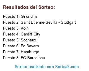 Lista de participantes: Cardiff City, Fc Bayern, Girondins, Sochaux, Köln, Saint Etienne-Sevilla - Stuttgart, Hamburgo, FC Barcelona.