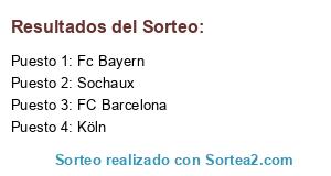 Lista de participantes: Fc Bayern, Sochaux, Köln, FC Barcelona.