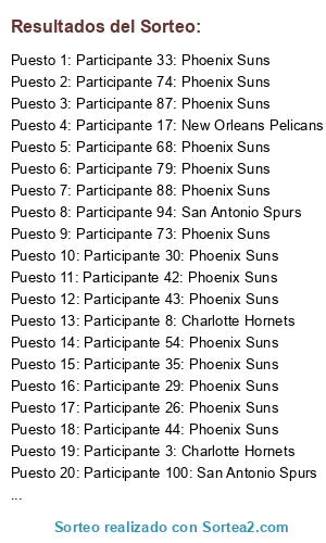- Puesto 10: Participante 30: Phoenix Suns