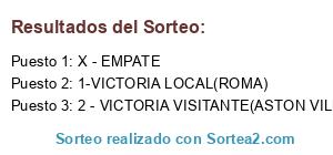Lista de participantes: 1-VICTORIA LOCAL(ROMA), X - EMPATE, 2 - VICTORIA VISITANTE(ASTON VILLA).