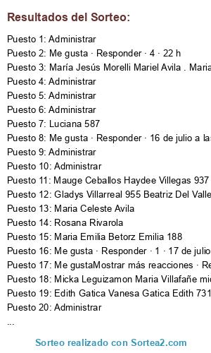 - Puesto 91: Me gusta · Responder · 17 de julio a las 20:02