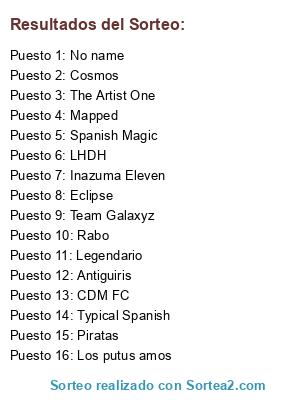 Lista de participantes: LHDH, Inazuma Eleven, The Artist One, Cosmos, Team Galaxyz, Eclipse, Antiguiris, Legendario, Mapped, CDM FC, Typical Spanish, Los putus amos, Piratas, Rabo, Spanish Magic, No name.