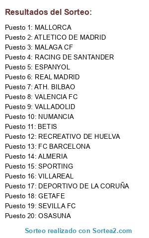 Lista de participantes: ARSENAL, JUVENTUS, FC.BARCELONA, LEVANTE, AT.MADRID, PSV, SANTOS, MILAN, BORUSSIA, CELTA, VALENCIA, MURCIA, LYON, ROMA, NAPOLES, R.MADRID O BETIS.