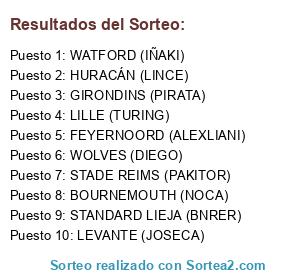 Lista de participantes: JOSECA (ALAVÉS), MANU (ATH. BILBAO), ALIOS (CELTIC), PIRATA (NEWCASTLE), PAKITOR (NIZA), NEOS (ESPANYOL), EMI (S. LISBOA), BNRER (C. PALACE), TOCAYVETE (ROSARIO), ÁLVARO (GETAFE).