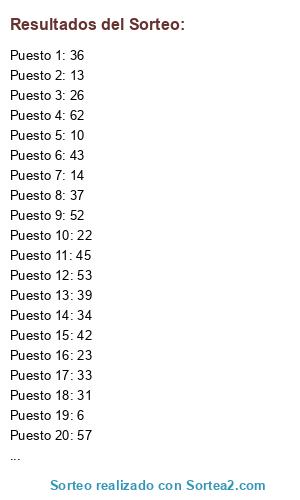 Resultados del sorteo: