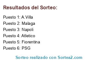 Lista de participantes: Atletico, PSG, Fiorentina, Napoli, Malaga, A.Villa.